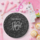 Servez vos invités de fête d'anniversaire avec ces élégantes douces 16 specks d'argent noir Plaques de papier personnalisées. Ce design moderne a un arrière - plan noir et des specks faux argent superposés. "Sweet 16" est au centre en blanc et gris écriture manuscrite écriture de lettres. Le nom est en lettres minimales blanches sur le centre supérieur.