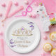 Assiettes En Carton Elégant violet Feuille Gold Tiara Quinceañera