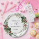 Classy paper plates featuring a delicate gold geometric frame encircling a lush watercolor wreath adorned with vibrant red berries, and greenery.