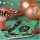 Fêtez leur 19e anniversaire de mariage jade avec ces élégantes plaques en papier! Le lettrage noir et blanc élégant avec des confettis hexagonaux dorés sur des arrière - plans tressés, vert jade et noir apporte une touche mémorable à cette occasion spéciale et à cette étape importante. Personnalisez avec le nom du couple et la date du mariage. Design © W.H. Sim, Tous droits réservés. Voir plus sur zazzle.com/expressionsoccasions