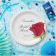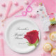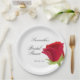 Élégantes Assiettes en Papier pour Baby Shower avec rose rouge en aquarelle. Il est très facile de personnaliser, avec les détails de vos informations personnelles.