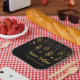 Customisez ces assiettes de fêtes d'entreprise chic avec cet élégant script or cursif sous un éventail d'ornements de Noël. L'élégante typographie sur une plaque noire moderne ajoute une touche de classe à ce rendez-vous de Noël d'affaires personnalisé. Personnalisez avec le nom de votre entreprise.