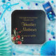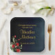 Delicate, sophistiquée et pleine d'élégance plateaux de fête avec un arrangement floral simple, mais beau sur le coin inférieur gauche avec de magnifiques fleurs rouges et des botaniques vertes complétés. Elégante typographie dorée personnalisable pour les détails de l'événement sur un dégradé bleu minuit pour arrière - plan.