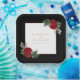 De beaux vaporisateurs floraux aquarelles... avec de magnifiques pivoines rouges, une verdure luxuriante, l'eucalyptus et l'haleine du bébé... entourent un cadre rectangle avec vos détails mariages en écriture typographique or. Les riches tons rouges et verts des fleurs mettent en valeur les élégants arrière - plans noirs, blancs et dorés. Ajoutez vos propres détails en suivant le lien "Personnaliser". Si vous désirez obtenir de l'aide, veuillez me contacter par courriel ou par courriel à Zazzle. susanmingaydesigns@gmail.com