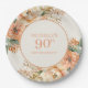 Elégante pêche et crème aquarelle florale et feuillage 90e anniversaire plaques de papier fête pour femmes. Contactez-moi pour obtenir de l'aide sur vos personnalisations ou pour demander des produits Zazzle supplémentaires pour vos événements