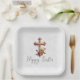 Assiettes En Carton Elégante Croix en bois aux fleurs roses Pâques