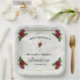 Celebra el bautizo de tu bebé con tus seres queridos mientras ofreces comida con estos hermosos platos de papel de réception de bautizo. Estos platos de papel para niña para la récepción del bautizo tienen un elegante fondo de mármol con una cruz dorada y rosas rojas. Personaliza estos platos de bautizo de niña o niño con el nombre de tu bebé y la fecha de tu evento.