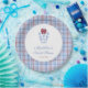 Cette conception présente mon illustration originale à l'aquarelle (d'un pot à gingembre bleu et blanc avec un nœud ruban rouge) avec un monogramme à lettre unique. Montré ici pour une fête de mariage, mais cette conception conviendrait également pour une fête de bébé ou une fête de Noël.