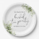 Cette élégante assiette en papier de fête de thé de mariage botanique avec verdure peut être personnalisée avec vos informations en typographie chic. Conçue par Thisisnotme©