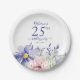 Ces élégantes plaques de papier floral aquarelle 25ème anniversaire de fête sont ornées de fleurs d'été rose et violet et d'un nom et d'une date à personnaliser dans la typographie script moderne. Conçu par Susan Coffey.