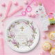 Assiettes En Carton Élégante Fleurs de Magnolia Rose Wreath Gold Bapti
