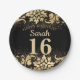 Elégante et brillante parties scintillant noire et or Sweet 16 assiettes de fête "Happy Birthday" personnalisées avec votre nom et votre âge.