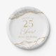 C'est un Elégant White Gold Agate 25th Birthday Party Paper Plates!