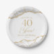 Assiettes En Carton Elégante White Gold Agate 40e fête d'anniversaire