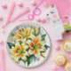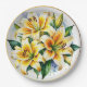 Un design élégant avec des lys aquarelles, verdure et cadre doré sur le bord!