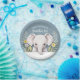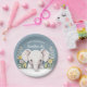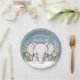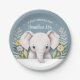 Un design doux pour bébé éléphant avec des fleurs blanches et de la verdure.