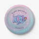Joli dessin animé bleu bébé éléphant avec fleur rose sur rose et bleu arrière - plan avec étincelles blanches
