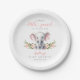 Plate de papier de douche pour bébé d'éléphant à fleurs rose mignonne.