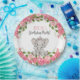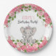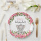 Plaque de papier pour la fête d'anniversaire de la petite fille avec un joli éléphant portant une tiare de princesse et un arc rose, et encadré par de belles fleurs roses. Contactez-nous pour obtenir de l'aide sur la personnalisation ou pour demander des produits correspondants.