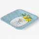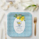 Un design élégant de Baby Shower avec un fond de carrelage bleu et une tasse de citrons.