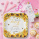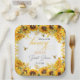 Un design de Baby Shower élégant avec des abeilles et un fond de tournesols et une calligraphie élégante.