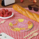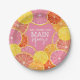 Des fruits d'agrumes fantaisistes en rose, corail, orange et rouge rubis pour une ambiance colorée. Les tranches d'agrumes dessinées à la main comprennent une texture peinte à l'aquarelle pour un ajout juteux à une assiette en papier pour une douche de mariage colorée.