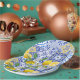 Ce citron aquarelle a trouvé son principal thème serré Plaques de papier de douche méditerranéennes nuptiale avec carreaux méditerranéens motif en bleu et blanc.Le bleu poussiéreux, jaune, bleu marine et blanc est une palette de couleurs parfaite pour la décoration de la douche nuptiale classe et formelle.