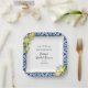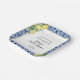 Conçu pour se coordonner avec la collection Jenny's Lemon, cette assiette en papier pour la soirée de mariage présente des bouquets de citrons jaunes décorant un carreau bleu carré et un cadre doré. Elle a trouvé son Main Squeeze commence le texte de la soirée de mariage. Le nom de la mariée et la soirée de mariage suivent, écrits dans une police de caractères moderne et tendance. La date complète le texte. Tout le texte est modifiable.