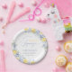 Assiettes en papier élégantes avec des citrons aquarelles et des fleurs bleues douces. Parfait pour une douche de mariée estivale, combinant praticité et design élégant inspiré de la Méditerranée.