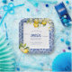 Cette invitation à une fête de mariage présente un thème bleu vif avec des agrumes.