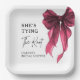 Complétez votre célébration avec ces assiettes en papier pour la douche de la mariée à ruban rouge "She's Tying The Knot", conçues pour apporter une élégance sans effort et un style moderne aux douches de la mariée, aux fêtes de fiançailles, aux célébrations de bachelorette et aux événements du week-end de mariage.