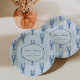 Nos assiettes de réception de mariage de homard d'été sont parfaites pour votre célébration au bord de la mer ! Le design côtier fantaisiste présente des lettrages bleus méditerranéens et des illustrations de homard sur un fond rayé cabane bleu pâle. Deux lignes de texte personnalisé sont encadrées par une bordure gribouillée en coquille ondulée. Affiché avec "elle est un trésor" et le nom de la future mariée.