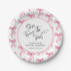 Elle noue le noeud Plaques personnalisées en papier Fête des mariées rose + blanc. Élégant script de style calligraphie à la main avec un motif avant tout mignon. Il vous suffit de personnaliser le modèle avec le titre et la date de votre événement. © Kimbellished, LLC