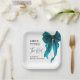 Complétez votre célébration avec ces assiettes en papier She’s Tying The Knot Turquoise Bow Bridal Shower, conçues pour apporter une élégance sans effort et un style moderne aux douches de mariée, aux fêtes de fiançailles, aux célébrations d'enterrement de vie de jeune fille et aux événements de week-end de mariage.