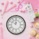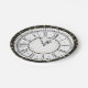 Cette plaque en papier comporte une horloge noire avec des chiffres romains sur un arrière - plan blanc. Autour du bord de l'assiette se trouve une bordure noire avec des étoiles dorées. L'intérieur de l'horloge dit "Embrasse-moi à minuit." Parfait pour le Nouvel An ou toute autre réunion formelle.