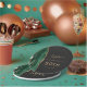 Ces élégantes plaques modernes de 50e anniversaire présentent une aquarelle couleur vert émeraude, ornée d'une parties scintillant en faux or sur un arrière - plan non noir. Customisez facilement le texte de couleur or avec le nom et l'anniversaire de l'invité d'honneur.