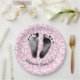 Assiettes En Carton Empreinte fille bébé sur rose et blanc