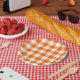 Assiettes En Carton En vichy Orange Lumineux Personnalisé