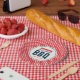 Assiettes En Carton En vichy rouge et Baby shower bleu barbecue