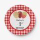 Assiettes En Carton En vichy rouge et ballons 1er anniversaire