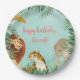 Jungle ou plaque à papier d'animaux de safari pour la partie d'anniversaire de enfant comportant les mots "joyeux anniversaire" et illustration des animaux africains, comme l'éléphant, la girafe, le lion et le tigre. Customisez facilement les plaques à papier pour le garçon d'enfant en bas âge avec votre message, couleurs préférées et polices.