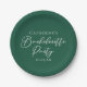 Cette assiette en papier vert émeraude uni pour enterrement de vie de jeune fille avec écriture blanche classique est destinée à une mariée qui aime la nature et le plein air. Célébrez votre amie avec cette couleur profonde sur cette décoration d'enterrement de vie de jeune fille chic et minimaliste.