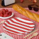 Assiettes En Carton Épais Gras Bandes Rouges et Blanches