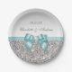Assiettes En Carton Épouser turquoise de paillettes d'argent d'arc de