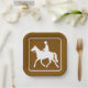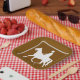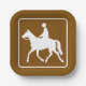 Serve your guests with style using these equestrian-themed paper plates. Featuring the distinctive brown and white silhouette of a horse and rider, these plates are perfect for western-themed parties, barn gatherings, pony club events, or rustic outdoor celebrations. The graphic provides a fun, trail marker aesthetic that is both convenient and decorative for any horse enthusiast gathering. Keywords: equestrian paper plates, horse riding symbol tableware, rustic party supplies, western style picnic plates, trail marker event dishware, horse lover disposable plates.