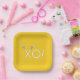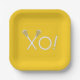 Fête de crosse créative ou assiettes d'événement pour joueur d'équipe, entraîneur ou fans de sport jour de jeu, soirée senior ou fête d'anniversaire avec bâtons de laxisme xoxo amour sur l'arrière - plan jaune.