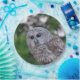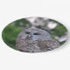 Cette plaque en papier présente une chouette barrée qui vit dans les bois du Connecticut.