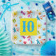 Plaques de papier de fête d'été. Un motif lumineux et amusant d'objets d'été, avec lunettes de soleil, tongs, étoiles de mer, palmiers, coquillages et soleil est l'arrière - plan sur de larges bandes bleues et blanches. Le design n'a pas de texte et peut être utilisé pour des fêtes d'anniversaire d'été et des barbecues jardins.