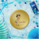 Plaques en papier baby shower d'abeilles avec adorable petite fille ethnique portant une tenue d'abeilles mignonette sur un riche arrière - plan en or avec des abeilles volantes. Vous pouvez ajouter du texte pour personnaliser ces plaques de papier baby shower d'abeilles noir et or, et vous pouvez supprimer l'arrière - plan or pour ajouter la couleur de votre choix.