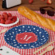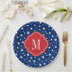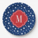 Plaques papier imprimées sur mesure avec un motif étoilé patriotique mignon et votre monogramme personnalisé ou autre texte dans un cadre élégant en quatrefoil. Cliquez sur Customiser pour modifier les polices de texte et les couleurs ou ajouter vos propres images pour créer une image unique d'un design unique. Parfait pour votre prochain pique-nique en famille ou 4 juillet barbecue !